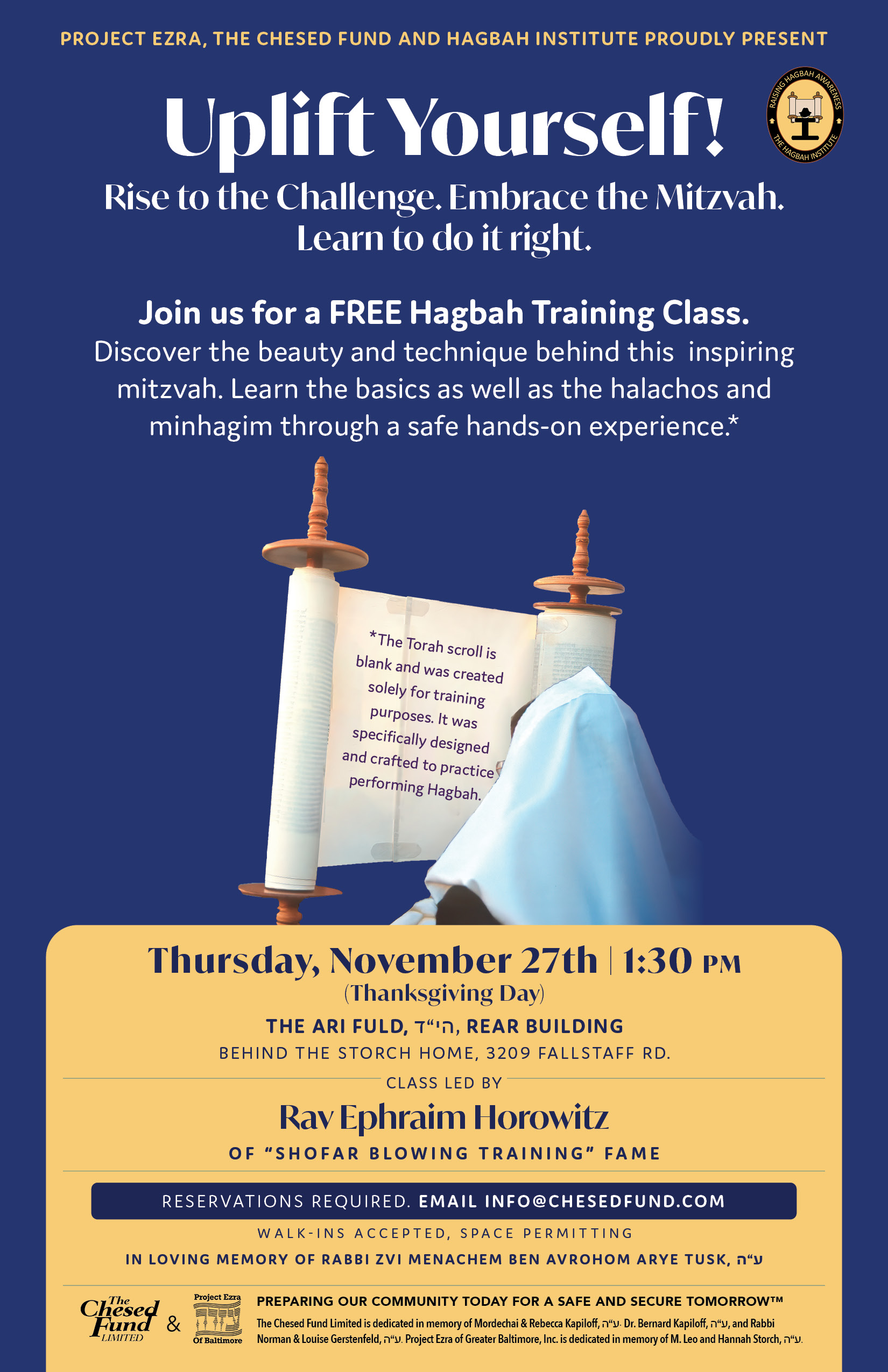 The Chesed Fund Limited is dedicated in memory of Mordechai & Rebecca Kapiloff, ע׳׳ה. Dr. Bernard Kapiloff, ע׳׳ה and Rabbi Norman & Louise Gerstenfeld, ע׳׳ה. Project Ezra is dedicated in memory of M. Leo and Hannah Storch, ע׳׳ה.